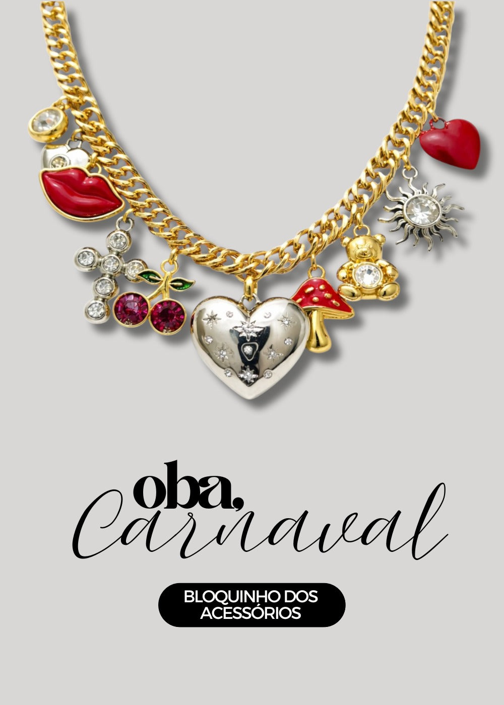 Colar Charms com Pingentes Banhado à Ouro 18k